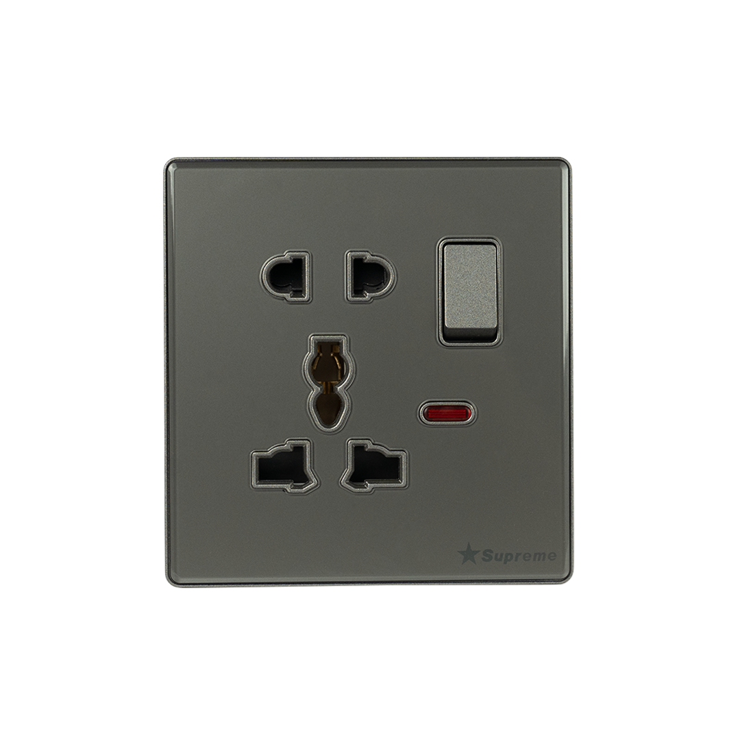 Black Mirror 15A Round Socket with Switch